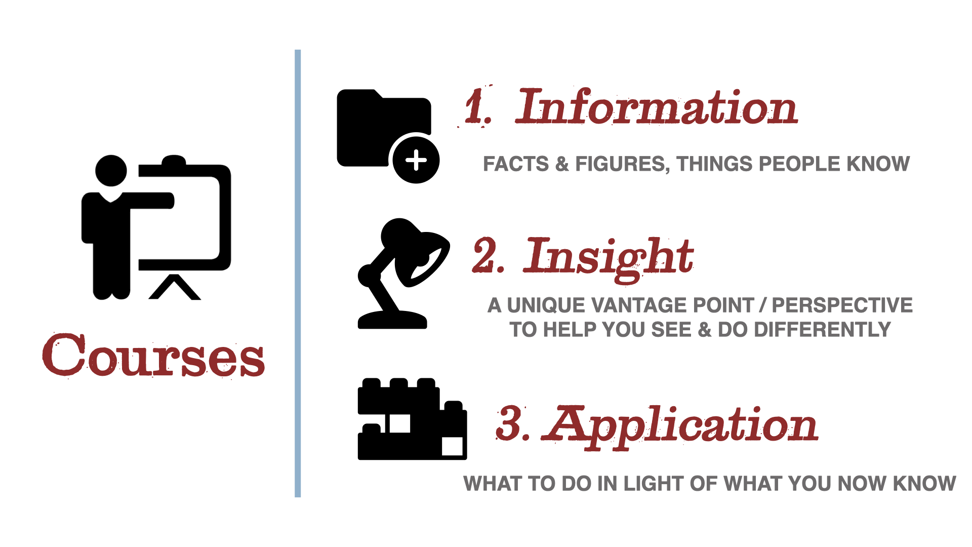 Both courses and coaching focus on life transformation-- not just amassing information.